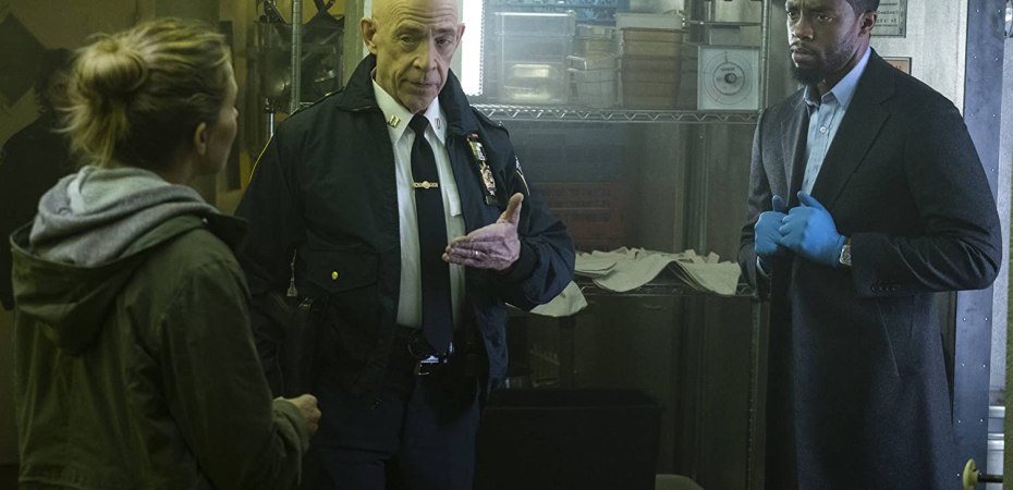 There are issues left and right with the script, larger problems like the tedious dialogue and smaller issues like oversights due to focusing on what they want rather than realism, such as Boseman’s Andre walking onto a crime scene and being treating as if he has authority over his senior officers. It’s the type of writing where it feels like they’re swinging at catchphrases rather than attempting to put together a coherent plot. The characters are simply uninspiring, they take the classic archetypes of previous films and add nothing to separate them from the crowd. All of which is topped by a score that plays out more like it’s set in Gotham rather than New York, pushing for a cheap super hero fighting the villain atmosphere, which is ill suited.