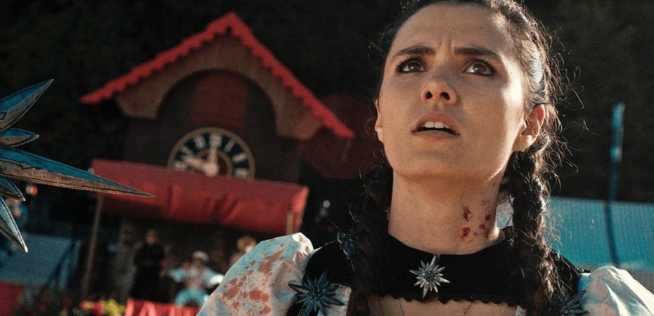 A few things that are best to get out of the way first when talking about Mad Heidi, yes there is going to be some dodgy accent work, some questionable choices and a big amount of not giving a f*ck. The next thing to consider is that there are no rules when it comes to horror and especially not when it comes to truly indie cinema. All bets are off and you can make a film that is not just cheesy in tone but is drowning in cheese. So your enjoyment of this film is going to entirely depend on what mindset you’re going in with, if you’re open to an over the top, 1970s style, violent, gross and preposterous piece of entertainment, then you’re all set.