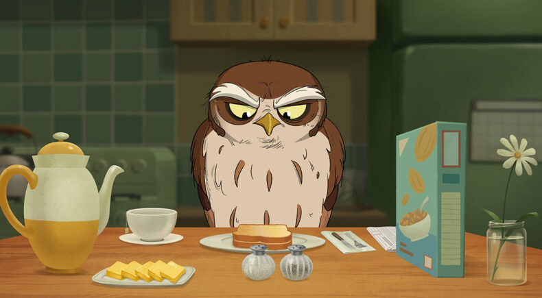 That’s all then wrapped in a beautiful animated visual which has such excellent textures. The way that it flows is comforting and curious. It has a wonderful use of colour, and that hand-drawn style is inherently charming and inviting. The way that the animators and designers create Christopher’s home to make it a very realistic portrayal of a home (though it’s usually for a person, not an owl) makes for a really nice contrast versus its overall warmth and softened edge.